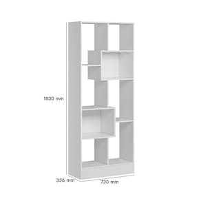 Estante Livreiro com 8 Nichos - Qmovi A Estante Livreiro com 8 Nichos é um produto multifuncional, ideal para decorar e organizar diversos ambientes. Com um design moderno, composto por seus nichos de formatos diferenciados, ele leva beleza e praticidade ao seu espaço. O produto possui sistema antitombamento, que garante segurança e evita riscos de acidentes.