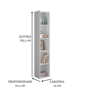 A Estante Livreiro com Prateleiras Janaína da AJL Móveis, é um produto prático e funcional, ideal para guardar livros e objetos de decoração. Possui 4 prateleiras formando 5 nichos, permitindo reorganização do espaço interno de acordo com as necessidades, possui estrutura de excelente qualidade confeccionada em MDP e acabamento em pintura UV que proporciona maior durabilidade e resistência ao produto.