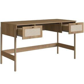 Com estrutura robusta, você terá amplo espaço para armazenar seus livros favoritos, exibir coleções e acomodar objetos de decoração que contam a sua história, enquanto a mesa para será o palco de grandes ideias e criações. Além disso, os pés em madeira maciça garantem não apenas resistência, mas também um toque de charme rústico que complementa qualquer ambiente. Para completar o charme, o aplique em tela sintética no painel traseiro da estante e nas duas gavetas da escrivaninha traz um toque artesanal, suave e acolhedor.