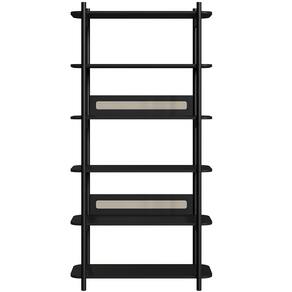 06 prateleiras com cantos arredondados e detalhe traseiro com aplique de tela sintética (PVC com poliéster).