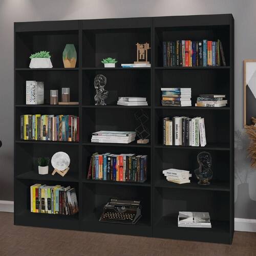 Estante preta com 12 prateleiras e 1,71m de altura. Ideal para sala, quarto ou escritório. Estrutura em MDP com pintura UV e acabamento em brilho. Funcional e elegante.