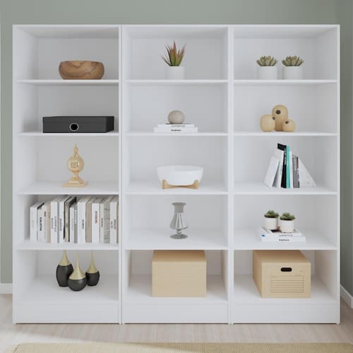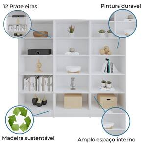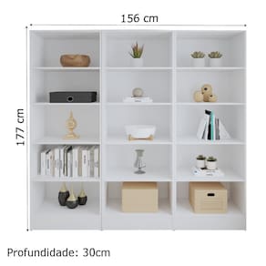 O Conjunto de Estantes Livreiro Multiuso Mirage, é perfeito para quem procura muita sofisticação e praticidade. Possui 12 prateleiras amplas e espaçosas, para acomodar livros, objetos de decoração e documentos diversos. O fino acabamento com pintura ultravioleta, oferece maior durabilidade e resistência ao móvel. MARCA: Viero Móveis MODELO:Estante Livreiro Multiuso Mirage MEDIDAS: [ A ] = 177 cm [ L ] = 152 cm [ P ] = 30 cm COR: Branco ACABAMENTO: Pintura Uv Semi Brilho MATERIAL: MDP/MDF 15 mm POSSUI PORTAS: Não PRATELEIRAS: Sim, 12 PRATELEIRAS SUPORTA ATÉ: 3,0 kg PESO: 63,0 kg SISTEMA DE MONTAGEM: Parafusos e Cavilhas GARANTIA: 3 meses RECOMENDAÇOES DE LIMPEZA: Limpar com pano levemente umedecido com água e sabão neutro. ITENS INCLUSOS: Uma Estante, kit de Parafusos e manual de montagens. OBS. Montagem não inclusa. Entregamos até a porta de entrada da casa do cliente ou até a portaria do condomínio.