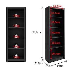Características: Estrutura em MDP Acabamento em BP 05 Prateleiras Peso Suportado 12kg cada Prateleira Amplo espaço