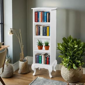 Estante Livreiro Pequena 3 Prateleiras Pés Luiz Xv - Branco Laca