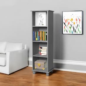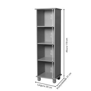 Estante Livreiro Pequena De Madeira 3 Prateleiras Pés Torneados - Cinza Laca