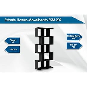 Estante de Livros ESM209 c/ 5 Nichos Preto - Movelbento