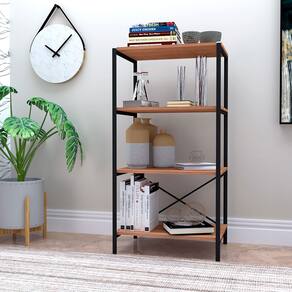 Esta estante possui quatro prateleiras espaçosas que proporcionam amplo espaço para armazenar livros, decorativos, plantas e outros itens essenciais. Seu design robusto e resistente garante durabilidade e estabilidade, suportando o peso dos objetos sem comprometer sua estrutura. Além disso, as prateleiras abertas facilitam a visualização e o acesso aos itens.