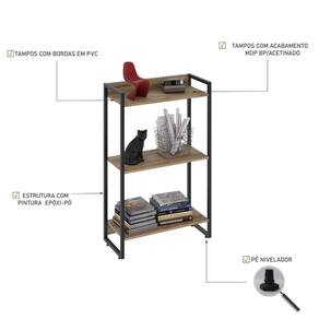 Estante Multiuso 3 Prateleiras 60cmx104cm Dynamica Compace Carvalho - Marrom