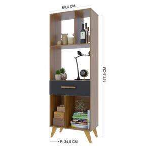 ALTURA (CM): 177,5 | LARGURA (CM): 60,4 | PROFUNDIDADE (CM): 34,5 | QUANTIDADE DE GAVETAS: 1 | Tipo de móveis de cozinha: Multiuso | Conteúdo da embalagem: 1 Estante Multiuso, Manual de Montagem e Kit Ferragens | Materiais do corpo: MDP | Cor: Freijó/Chumbo