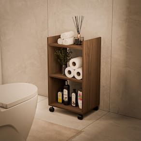 A Estante Multiuso Armário Móvel para Banheiro Nogal com Rodinhas 40cm é a solução ideal para otimizar o espaço e a organização em seu banheiro!