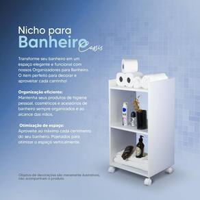 Os nichos internos fornecem amplo espaço para guardar seus produtos de higiene pessoal, toalhas, papel higiênico, cosméticos e muito mais. Além disso, possui rodinhas que permitem que você mova facilmente a estante, facilitando a limpeza e a reorganização do ambiente.