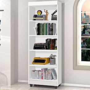 Estrutura: MDPAcabamento: Pintura U.V.Portas: Não,Prateleiras: Sim, 05 prateleiras fixa, suporta ate 15 Kg cada prateleiraPés: Sim, PVCPeso: Suportado Suporta até 60 Kg totalDimensões do produto Montado