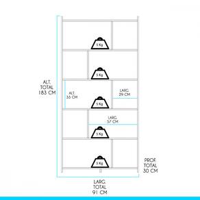 Dimensões do Produto Montado: Altura: 183 cm Largura: 57 cm Profundidade: 30 cm Peso: 22,5 kg