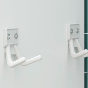 Possui 5 prateleiras que pode ser montado de diversas formas, 2 portas, com suporte esterno para penturar vassouras, rodos ou o que você preferir,