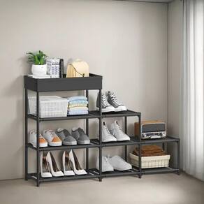 * Estante Multiuso Sapateira 8 Prateleiras Cesto Vazado Organizador Quarto Closet Lavanderia Preto: desempenho consistente e intuitivo.