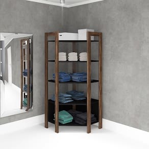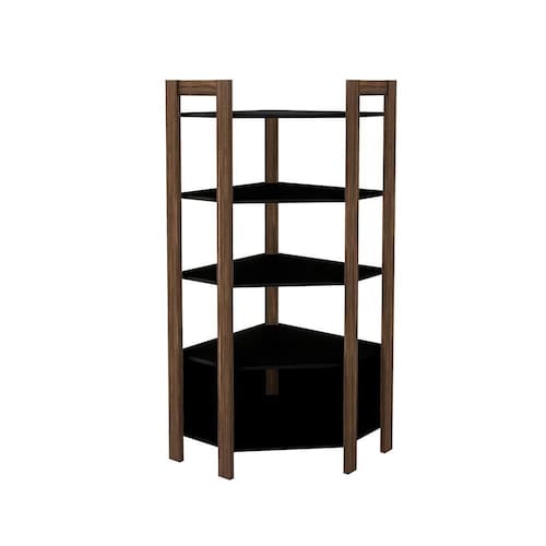 Estante Organizador Armário de canto AZ1020 MDP Preto/Nogal - Gran Belo Possui cinco prateleiras com amplo espaço, estrutura em MDP, acabamento perfeito de excelente qualidade. Com designer contemporâneo, e linhas simétricas, a união de suas sobre cores m ao ambiente sensações de harmonia e elegância entre a decoração. Prática e cheio de estilo se destaca em qualquer tipo de ambiente.