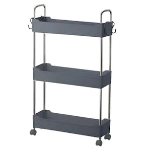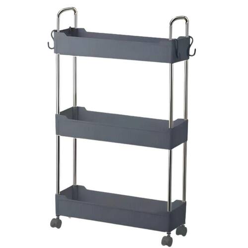 Organize seus ambientes com a Estante Organizadora Móvel de 3 andares na cor cinza, perfeita para cozinhas, banheiros, lavanderias e escritórios.