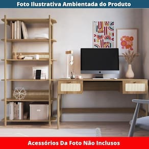 Estante Oslo Artesano 90 Cm (largura) Mdp Hanover Palha Sintética Bege Pé Madeira Maciça