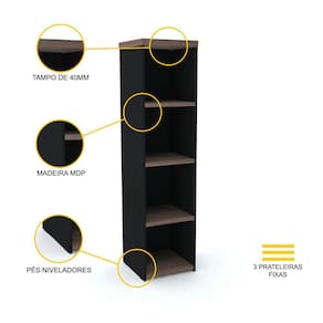 Não sabe o que fazer com aquele canto do escritório, sala de trabalho ou algum cômodo mais sóbrio da sua casa? Essa estante com três prateleiras na cor de madeira escura e laterais pretas é ideal para que nenhum canto de sua decoração fique de fora. Ao mesmo tempo utilitária e decorativa, ela é perfeita para expor livros, materiais para consulta ou estudo, peças de decoração ou pode servir até mesmo como um expositor de coleções. Comece agora sua biblioteca particular ou dê asas às ideias e invente sua própria maneira de usar esta peça versátil. Deixe sua vida em ordem e seu ambiente mais bonito com essa estante da linha PE40 da Pandin, conhecida por suas peças de design clássico e sofisticado, que unem beleza, funcionalidade e estilo ao melhor custo-benefício do mercado. Nesta linha, você também vai encontrar uma diversidade de arquivos, armários, gaveteiros e mesas cheios de estilo, sob medida para suas necessidades.