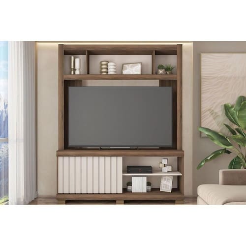 Home p/ TV até 65 Pol Cinne c/ Ripado Pés 160x203cm Nogueira San Remo/Off White - Caemmun