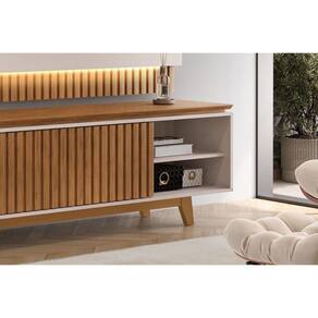 Tipo de Porta - Portas de Correr Diferenciais das Portas - Portas Ripadas - Portas com Detalhe Ripado Quantidade de Portas - 1 Porta de Correr Quantidade de Espelhos - Não Acompanha Espelho Tipo de Iluminação - Iluminação Fita LED Quantidade de Prateleiras - 2 Prateleiras Quantidade de nichos - 4 Nichos Ideal para TVs até (Polegadas) - 75 Tipo dos Pés - Pés de Madeira Quantidade de Pés - Móvel possui 4 pés