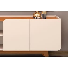 Rack Bancada p/ TV até 75 Polegadas Nadine c/ Nicho 220x60cm Off White/Freijó - DJ Móveis