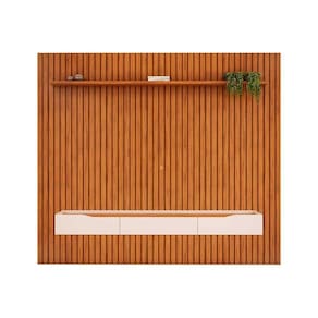 Rack Bancada c/ Painel p/ TV até 85 Pol Pratic Ripado 3 Gavetas 275x240cm Freijó/Off White - DJ Móveis