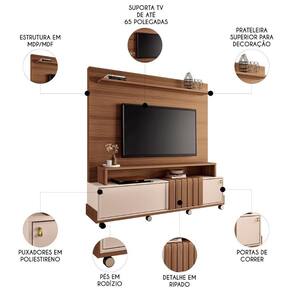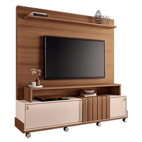 Essa Estante Painel de 65 Pol 180cm Cloe H01 Castanho/Off White, da Mpozenato é ideal para inovar a sua Sala De Estar, deixando mais moderna e elegante!