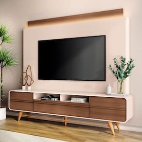 Crie uma experiência cinematográfica em casa com a Estante Painel de 85 Pol 220cm Nobre Castanho/Off White, da HB Móveis.