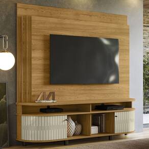 A Estante Painel de TV 65 Pol 183cm Ramona Z10 Cumaru/Opala, da Mpozenato, é a peça ideal para trazer inovação e modernidade à sua Sala de Estar.