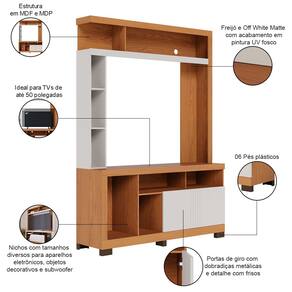 09 nichos com tamanhos diversos para aparelhos eletrônicos, objetos decorativos e subwoofer.