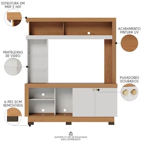 Com design moderno, essa estante para sala foi projetada para receber telas de até 50 polegadas, de modo que fique bem instalada, para que você e sua família aproveitem as horas de descanso, enquanto curtem aquela série ou filme. Além disso, o amplo compartimento, tanto interno, quanto externo, permite que você guarde com organização diversos itens, como também exponha objetos decorativos para deixar a sala de acordo com o seu estilo e gosto, sem contar que ainda pode instalar os demais aparelhos eletrônicos, inclusive subwoofer, caso você goste do som com qualidade de cinema. Ah, já os pés possuem montagem opcional, ou seja, você pode escolher instalar ou não. Demais, não é mesmo?!