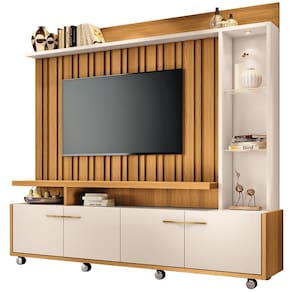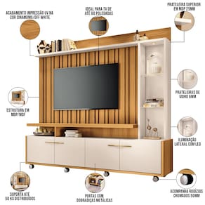 Com design imponente e detalhes de tirar o fôlego, a Estante Painel para TV 60 Pol com LED Ian B01 Cinamomo/Off White, da Lyam Decor, é a opção perfeita para quem quer renovar a casa, agregando beleza e funcionalidade. O painel para tv ripado garante uma sala de estar moderna, ao passo que o nicho lateral com prateleiras de vidro é ainda mais evidenciado com o enfoque da luminária de LED. Já a versatilidade fica por conta dos rodízios cromados, uma vez que facilitam a mobilidade da peça, enquanto você ganha espaço de armazenamento com as quatros portas que vão te ajudar a manter tudo no lugar.