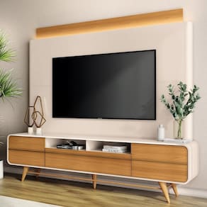 Conheça a Estante Painel para TV com LED Royal, da Lyam Decor, o móvel que redefine o conceito de elegância e funcionalidade em um verdadeiro espetáculo de design orgânico. Com sua bancada curva e pés em madeira maciça torneados, essa peça é a união perfeita entre arte e praticidade, trazendo um toque acolhedor e sofisticado para o seu Home Theater.