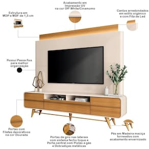 Os cantos arredondados não apenas garantem segurança, mas também criam uma fluidez visual que harmoniza com qualquer decoração. E para aqueles momentos especiais, a fita de LED embutida ilumina o ambiente, realçando cada detalhe e transformando sua sala de estar em um espaço convidativo e moderno. Além disso, essa estante é projetada para suportar TVs de até 85 polegadas, ideal para quem busca uma experiência cinematográfica em casa.