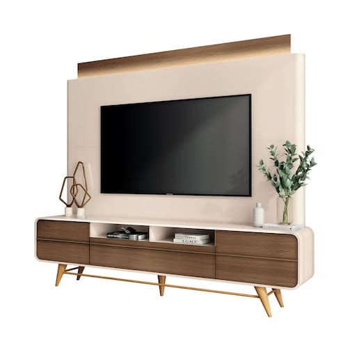 Ideal para TVs de até 85 polegadas, este painel suporta até 50kg distribuídos. Disponível nas combinações de cores Off White-Cinamomo e Off White-Castanho, adapta-se a diferentes estilos de decoração.