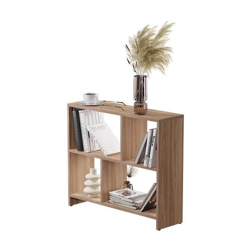 Possui compartimentos projetados para organizar livros, objetos decorativos e outros itens essenciais, mantendo tudo ao alcance das mãos para qualquer ocasião.
