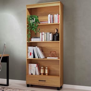 Estante Para Livros 1 Gaveta 3 Prateleiras 100% Mdf Freijó C57 - Pradel - Marrom