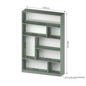 - Garantia: 03 meses Produto Montado: Sim Acabamento da Prateleira: Melamínico Acabamento dos Pés: BP Altura dos Pés: 1,5 cm Altura Máxima dos Pés: 1.5000 Ambiente Principal: Escritório codigo_ean: 7900288062031 Complexidade da Montagem: Média: pode ser montado por mais de uma pessoa e/ou necessite de maior conhecimento para montagem Cor: Verde Bellagio Cor do Produto: Verde Bellagio Cor Flex: Não Cor Interna: Verde Escala de Brilho: Semi-Brilho Escala de Brilho da Prateleira: Semi-Brilho Informações Complementares: O produto não possui a opção de montagem flex dos nichos e prateleiras Itens Inclusos: 1 Estante + Kit de Ferragens + 1 Manual de Montagem Manual de Montagem e Instalação: https://product-hub-prd.madeiramadeira.com.br/976262/documents/54adff61-3151-4224-87c4-e8aab0f671c9vretoYESCASAEstanteSeattle.pdf Marca: Yescasa Material da Prateleira: MDP Material dos Pés: Plástico Material Principal: MDP Montagem Flex: Não Necessita Montagem: Sim Origem do Produto: Nacional Peso: 37 kg Peso Máximo por Prateleira: 5 kg Possui Acabamento na Parte de Trás: Não Possui Espelho: Não Possui iluminação: Não Possui Pés: 06 Possui Portas: Não Possui Prateleiras: Sim Possui Rodízio: Não Possui Vidro: Não Quantidade de Nichos: 08 Recomendações de Uso, Manutenção e Limpeza: Limpar com pano umedecido, sem adição de produtos químicos. Sapatas Niveladoras: Sim Sistema de Montagem: Parafusos, pregos, cantoneira e cavilhas. Suporta Até (kg): 30 kg