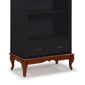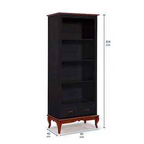 Estante para Livros 3 Prateleiras 1 Gaveta Pés Luis XV 60201 Linz Móveis - Preto/Imbuia - Preto