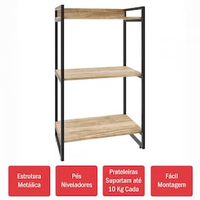 O(a) Estante para Livros 3 Prateleiras Win Carvalho - Pnr Móveis é produzido em MDP e Aço na escala de brilho Fosco, e possui um grau de dificuldade de montagem: Fácil.