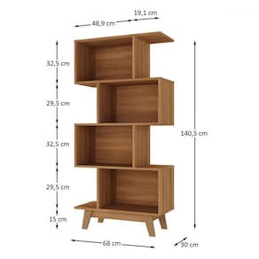 O(a) Estante para Livros 4 Nichos Nogal - Hecol Móveis  é produzido em MDP na escala de brilho Fosco, e possui um grau de dificuldade de montagem: Médio.