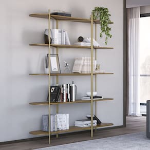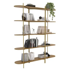 A Estante Gaia é a peça ideal para quem busca aliar funcionalidade e sofisticação na decoração. Com 5 prateleiras espaçosas, ela é perfeita para organizar livros, objetos decorativos ou até mesmo para ser usada como divisória de ambientes. Sua estrutura em aço dourado com pintura epóxi oferece resistência e um toque de elegância, enquanto as bordas em PVC de 1cm garantem acabamento de qualidade e maior durabilidade. Versátil e estilosa, a Estante Gaia transforma qualquer espaço com charme e praticidade. Produto Montado: Sim Acabamento da Prateleira: BP codigo_ean: 7900288175601 Complexidade da Montagem: Baixa: pode ser montado por uma pessoa sozinha Cor: Carvalho/ Dourado Cor do Produto: Carvalho/ Dourado Cor Flex: Não Cor Interna: Carvalho Escala de Brilho: Fosco Escala de Brilho da Prateleira: Fosco Itens Inclusos: 1 Estante, Kit de Ferragem e Manual de Montagem Linha ou Coleção: Gaia Manual de Montagem e Instalação: https://product-hub-prd.madeiramadeira.com.br/937857067/documents/159e4619-ab2c-443f-b938-dcdd640126572973210509217489785956636.pdf Marca: Espresso Móveis Material da Prateleira: MDP Material Principal: MDP Montagem Flex: Não Necessita Montagem: Sim Origem do Produto: Nacional Peso: 33,8 kg Peso Máximo por Prateleira: 10 kg Possui Acabamento na Parte de Trás: Sim Possui iluminação: Não Possui Pés: Não Possui Portas: Não Possui Prateleiras: Sim Possui Rodízio: Não Possui Vidro: Não Quantidade de Nichos: 04 Recomendações de Uso, Manutenção e Limpeza: Pano limpo e levemente umidecido Sapatas Niveladoras: Sim Sistema de Montagem: Minifix, Parafusos e Cavilhas Suporta Até (kg): 50 kg