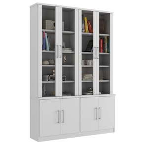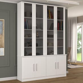 A Estante de Livros Foscarini é ideal para organizar diversos tipos de objetos como brinquedos, livros, pastas. É produzida em MDF e MDP, com acabamento UV fosco/texturizado o que garante brilho e proteção em toda a superfície do móvel. Seu sistema de montagem é realizado através de parafusos, minifix e cavilhas. Sua estrutura principal é de 25mm, que proporciona maior resistência e vida útil ao produto, possui um amplo espaço para que você possa manter todos os seus objetos organizados. Possui 4 portas superiores em vidro fumê com moldura. Acabamento da Porta: Pintura Texturizada UV Acabamento da Prateleira: Pintura Texturizada UV Ambiente Principal: Escritório Complexidade da Montagem: Média: pode ser montado por mais de uma pessoa e/ou necessite de maior conhecimento para montagem Cor: Branco Cor do Produto: Branco Cor Flex: Branco Cor Interna: Branco Escala de Brilho: Fosco Escala de Brilho da Porta: Fosco Escala de Brilho da Prateleira: Fosco Espessura do Vidro: 4 mm Itens Inclusos: 1 Estante e Manual de montagem. Manual de Montagem e Instalação: https://cdn2.madeiramadeira.com.br/atributo/moveis-foscarini/558951-1283-estante-para-livros.pdf Material da Porta: MDP Material da Prateleira: MDP Material do Puxador da Porta: Alumínio Material Principal: MDF/MDP Necessita Montagem: Sim Origem do Produto: Nacional Peso: 168 kg Peso Máximo por Prateleira: 5 kg Possui Espelho: Não Possui Possui iluminação: Não Possui Pés: Não Possui Portas: 08 Possui Prateleiras: 10 Possui Vidro: Sim Recomendações de Uso, Manutenção e Limpeza: Limpar com flanela ou pano macio seco, não utilizar produtos abrasivos, desengordurantes, álcool ou solvente. Não expor o produto diretamente à luz solar e à umidade. Sistema de Montagem: Parafusos, Minifix e Cavilhas. Suporta Até (kg): 100 kg Tipo de Dobradiça/Corrediça da Porta: Aço Tipo de Porta: Bater Tipo de Puxador da Porta: Externo