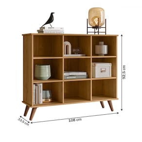 O(a) Estante para Livros 9 Nichos Freijó/Retro 1478 - Qmovi é produzido em MDP na escala de brilho Fosco, e possui um grau de dificuldade de montagem: Fácil.
