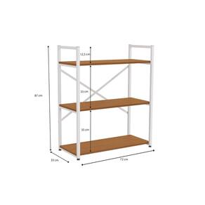 Organização e otimização com a Estante Baixa com Prateleiras LI007 da Linha Industrial Kappesberg. Medindo 87cm de altura, 72cm de largura e 33cm de profundidade, combina desde a sala de estar, o quarto, escritório ou mesmo na área de lazer ou garagem. Sua estrutura metálica é resistente, e pintada com tinta epóxi na cor branco brilho, garante maior durabilidade contra a umidade e um acabamento lindo. Com três prateleiras em MDP de 15cm e acabamento touch na cor canela, com a textura dos veios da madeira, garante amplo espaço para organizar livros, documentos, roupas, calçados, decorações e outros objetos. Seu reforço em X nas costas proporciona mais resistência, além de ser fácil de montar, com sapatas reguláveis, permitindo o ajuste em todos os pisos. Produto Montado: Sim Acabamento da Prateleira: Pintura UV Acabamento dos Pés: Pintura Altura dos Pés: 0,1 cm Altura Máxima dos Pés: 0.1000 codigo_ean: 7900288245472 Complexidade da Montagem: Média: pode ser montado por mais de uma pessoa e/ou necessite de maior conhecimento para montagem Cor: Canela/Branco Brilho Cor do Produto: Canela/Branco Brilho Escala de Brilho: Semi-Brilho Escala de Brilho da Prateleira: Fosco Itens Inclusos: 1 Estante, Manual de Montagem e Kit Ferragens Manual de Montagem e Instalação: https://product-hub-prd.madeiramadeira.com.br/444376904/documents/972648a1-9cff-451a-9405-0155cd5c1f333243700544517591457896078.pdf Marca: Kappesberg Material da Prateleira: MDP Material dos Pés: Polipropileno Material Principal: Aço Necessita Montagem: Sim Origem do Produto: Nacional Peso: 9,3731 kg Peso Máximo por Prateleira: 7 kg Possui Acabamento na Parte de Trás: Sim Possui iluminação: Não Possui Pés: 04 Possui Portas: Não Possui Prateleiras: Sim Possui Rodízio: Não Quantidade de Nichos: 02 Recomendações de Uso, Manutenção e Limpeza: Limpeza com pano macio levemente umedecido. Não utilizar produtos abrasivos. Sapatas Niveladoras: Não Sistema de Montagem: Parafuso Philips Suporta Até (kg): 20 kg
