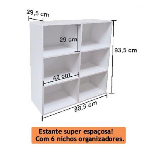 Estante para Livros com 6 Nichos Liverpool - Bella Vercelli 104 - Branco