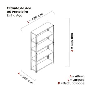 Estante de aço Pandin tem a melhor qualidade do mercado, porque são confeccionadas em chapas #20 e #26 (0,90mm e 0,45mm) priorizando sempre a qualidade, segurança e bem-estar no dia a dia dos nossos clientes. Produto Montado: Sim Acabamento da Prateleira: Pintura Acabamento dos Pés: Pintura Altura dos Pés: 3 Altura Máxima dos Pés: 3.0000 Ambiente Principal: Escritório codigo_ean: 7909903296448 Complexidade da Montagem: Baixa: pode ser montado por uma pessoa sozinha Cor: Azul Del Rey Cor do Produto: Azul Del Rey Cor Flex: Azul Del Rey Cor Interna: Azul Del Rey Escala de Brilho: Semi-Fosco Escala de Brilho da Prateleira: Semi-Fosco Itens Inclusos: 1 Estante com 5 prateleiras Linha ou Coleção: Aço Manual de Montagem e Instalação: https://product-hub-prd.madeiramadeira.com.br/848617/documents/d01b96ce-7fe3-4ee6-89d3-4826394a76d75190estantevu05prateleiras.pdf Material da Prateleira: Aço Material dos Pés: Polipropileno Material Principal: Aço Necessita Montagem: Sim Origem do Produto: Nacional Peso: 12,45 kg Peso Máximo por Prateleira: 20 kg Possui iluminação: Não Possui Pés: 04 Possui Portas: Não Possui Rodízio: Não Possui Vidro: Não Quantidade de Nichos: 01 Recomendações de Uso, Manutenção e Limpeza: Utilizar um pano levemente umedecido com água, para finalizar utilizar um pano seco. Sapatas Niveladoras: Sim Sistema de Montagem: Parafuso Suporta Até (kg): 20 kg