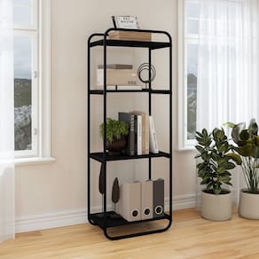 O(a) Estante para Livros Criare 4 Prateleiras Preto - Art Panta é produzido em Aço na escala de brilho Semi-Brilho, e possui um grau de dificuldade de montagem: Médio.