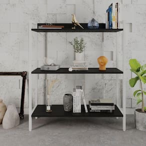 Estante para Livros Industrial Aço Multiuso 3 Prateleiras 104x80cm Active Yescasa Preto Ônix / Est.Branca